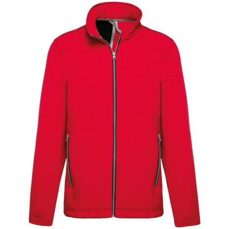 2-laagse herensoftshelljas Softshell 2 lagen om de warmte optimaal vast te houden. Waterafstotende buitenlaag, binnenlaag van microfleece. Biedt een optimaal comfort dankzij het elastische materiaal. Buitenkant: 95% polyester / 5% elasthan. Binnenkant: 100% microfleece polyester. Waterafstotende stof. Fitted pasvorm. 2 ritszakken aan de buitenkant. Contrasterende ritssluitingen. Verlengd achterpand. Stiksels op schouders en aan de zijkant.