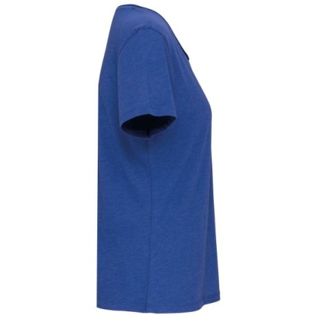 Bio dames-t-shirt kraag met onafgewerkte rand korte mouwen Soepel vallend, licht model. Volgt de minimalistische trend. Modieus detail: mouwen met onafgewerkte randen. Collectie Organic. NO LABEL. Effen kleuren: 100% katoen. Kleur Ocean Blue Heather: 80% katoen / 20% polyester. Alle kleuren zijn gemaakt van biologisch katoen. Ronde hals met onafgewerkte rand. Dubbel stiksel aan mouwuiteinden en onderkant. Geen merklabel aan de kraag, maar enkel een maatlabel ter vereenvoudiging van de personalisatie.
