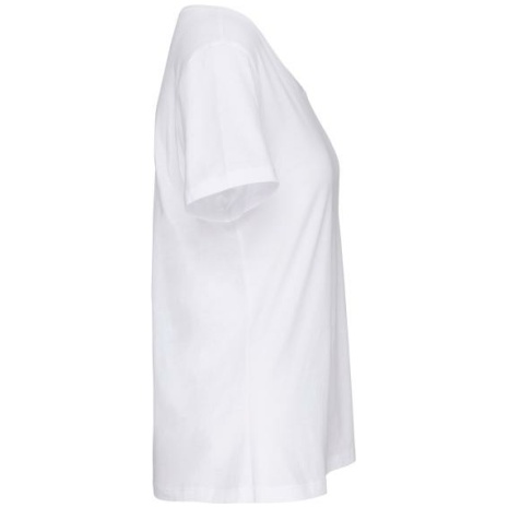 Bio dames-t-shirt kraag met onafgewerkte rand korte mouwen. Soepel vallend, licht model.