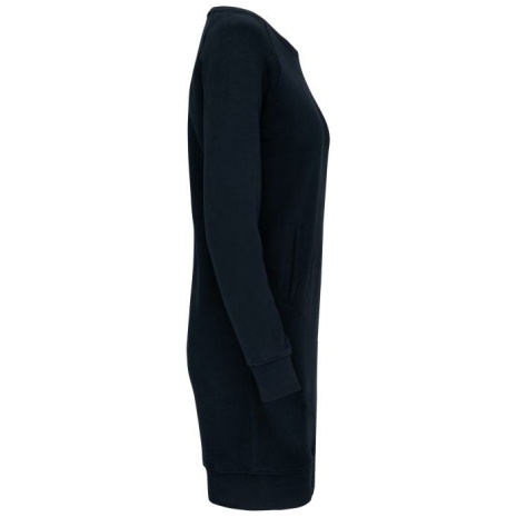 Bio fleece lounge jurk Los en casual model. Zacht gevoel en groot draagcomfort. Collectie Lounge. NO LABEL. Effen kleuren: 91% katoen / 9% polyester. 87% katoen / 9% polyester / 4% viscose voor de chiné kleuren. Alle kleuren zijn gemaakt van biologisch katoen. Ronde hals. Zachte “French Terry” fleece. Raglanmouwen. 2 omzoomde zakken aan de voorkant. Ribboord aan de mouwuiteinden en de onderkant. Geen merklabel in de kraag, maar enkel een maatlabel voor eenvoudige personalisatie.