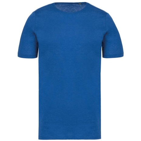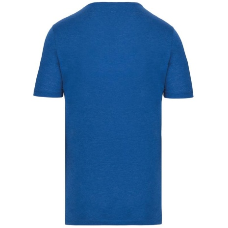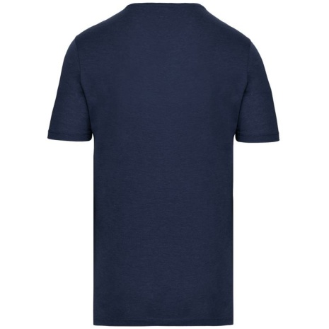 Bio T-shirt kraag met onafgewerkte rand korte mouwen Soepel vallend, licht model. Volgt de minimalistische trend. Modieus detail: mouwen met onafgewerkte randen. Collectie Organic. NO LABEL. Effen kleuren: 100% katoen. Kleur Ocean Blue Heather: 80% katoen / 20% polyester. Alle kleuren zijn gemaakt van biologisch katoen. Ronde hals met onafgewerkte rand. Dubbel stiksel aan mouwuiteinden en onderkant. Geen merklabel aan de kraag, maar enkel een maatlabel ter vereenvoudiging van de personalisatie.
