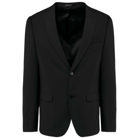 Colbert voor heren No label, voor een complete personalisatie. Getailleerde snit, modern en minimalistisch. Geschikt voor elk seizoen dankzij de mix van materialen. 50% polyester / 23% viscose / 22% wol / 5% elasthan. Toon-op-toon voering in twill (100% polyester). Fitted pasvorm. Jasje met twee ton-sur-ton knopen. Twee zakken met biesjes en kleppen, en een borstzakje met bies op de hartzijde. Vals toon-op-toon knoopsgat op de revers. Inzetsel opzij om het product vorm te geven. Satijnen ophanglus in de halsopening. Naad midden op de rug, Twee splitten onderaan. Mouwuiteinden met valse split en 4 toon-op-toon knopen. De twee borstzakjes binnenin zijn afgewerkt met een contrasterende bies. Links aan de binnenkant (bij het dragen) zitten een telefoonzakje en een ticketzakje met toon-op-toon bies. Drukkersrits aan de linkerkant (bij het dragen). Geen merklabel, maar enkel een maatlabel voor eenvoudige personalisatie.