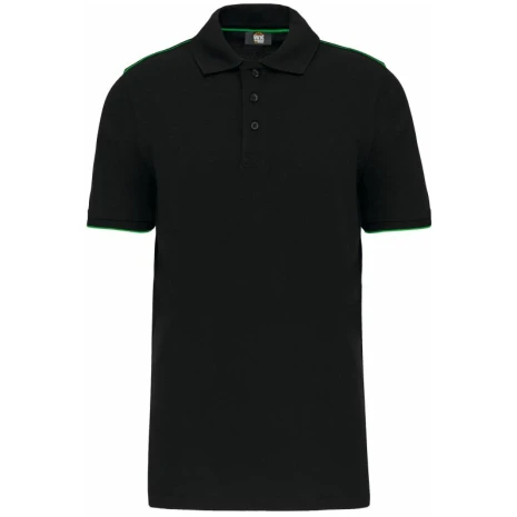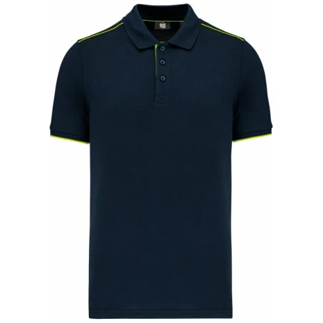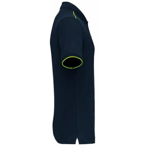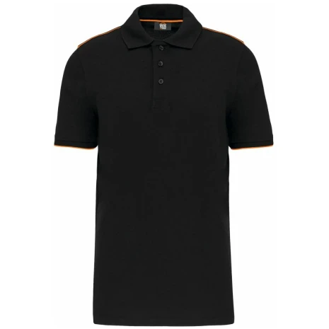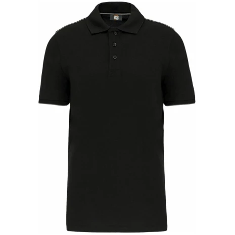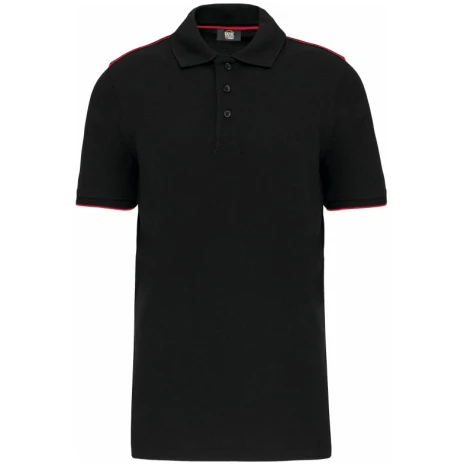 Contrasterende polo Day To Day korte mouwen. Contrasterende biesjes aan hals, schouders en knooplijst. Complete werkoutfit in bijpassende kleuren.