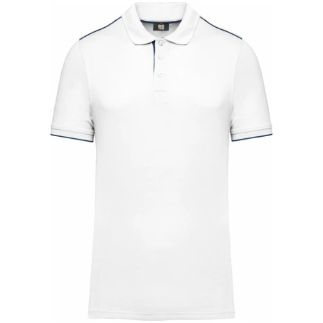 Contrasterende polo Day To Day korte mouwen Contrasterende biesjes aan hals, schouders en knooplijst. Complete werkoutfit in bijpassende kleuren. Collectie Day To Day : de professionele outfit voor iedere dag. Wasbaar op 60°C en anti-pluisbehandeling. 65% polyester / 35% katoen. Gekamd katoen piquétricot. Wasbaar op 60 °C. Anti-pluisbehandeling. Lijst met 3 knopen en contrasterende bies aan de binnenkant. Kraag in ribboord met nektape aan de binnenkant. Contrasterende bies aan binnenkant kraag en schouders. Ribboord met contrasterende bies aan de mouwuiteinden. Zijsplitten met contrasterend visgraatmotief voor meer comfort. Afwerking met dubbel stiksel onderaan. Ideaal voor dagelijks gebruik.