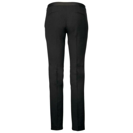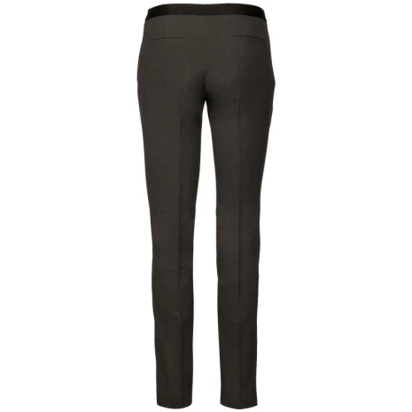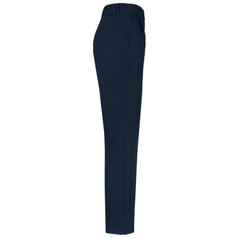 Dames pantalon Een onmisbaar, elegant stuk uit de professionele garderobe. Trendy, fitted pasvorm met discrete en verfijnde afwerkingen. Mantelpak om af te werken met kostuumjasje K6131. 64% polyester / 34% viscose / 2% elasthan. Broek met fitted pasvorm. 2 Italiaanse zakken aan de voorkant en 2 omzoomde achterzakken. Ritsgulp met haakje en knoop onder lijst. Riem met elastiek op de achterkant voor een optimaal comfort. Binnenbeenlengte: 78 cm. Broekspijp met onzichtbare zoom.