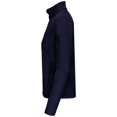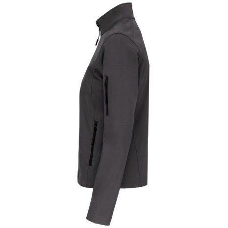 Dames softshell jas Softshell 3 lagen voor een ideale bescherming. Technisch, winddicht, ademend en waterdicht membraan. Biedt een optimaal comfort dankzij het elastische materiaal. 95% polyester / 5% elasthan. Stof in 3 lagen aan elkaar geklit, ademend 3000 g/m2/24H en 8000 mm waterdicht. Buitenkant: 95% polyester / 5% elasthan. Tussenlaag: ademend membraan. Binnenkant: microfleece. Getailleerde snit. Ritssluiting. Zakken met rits aan de voorkant. 1 zak met rits op de linkermouw.