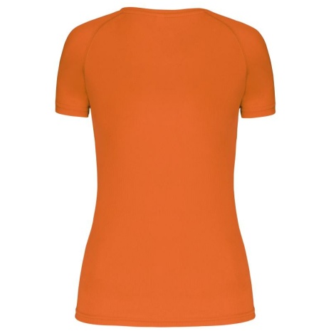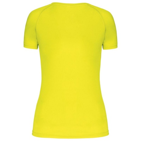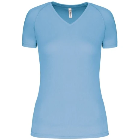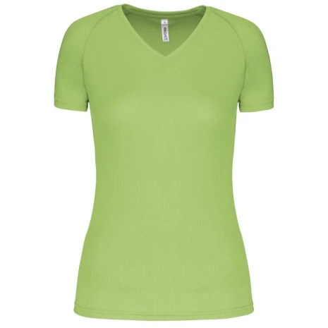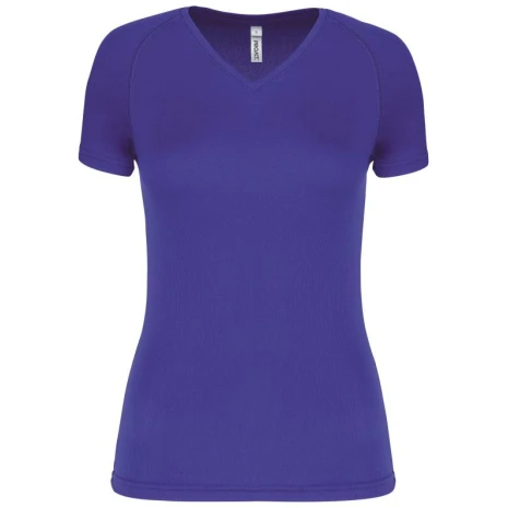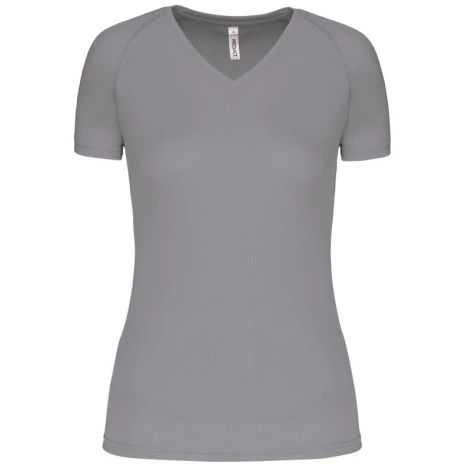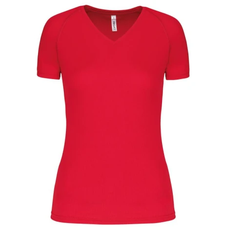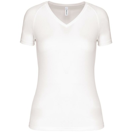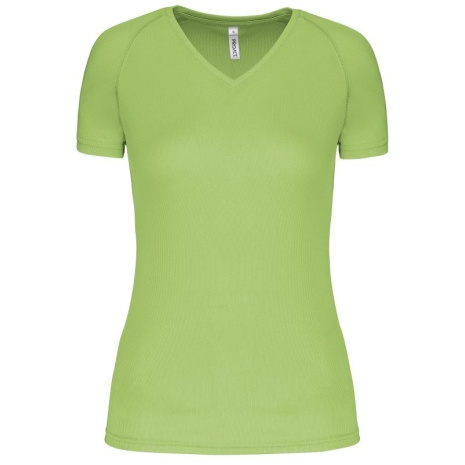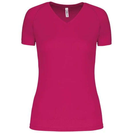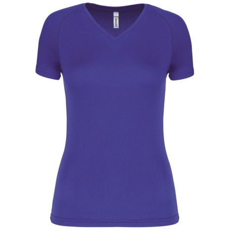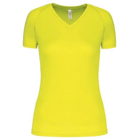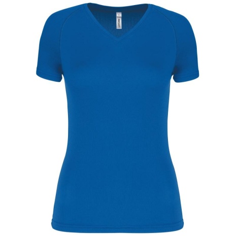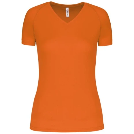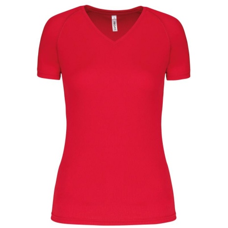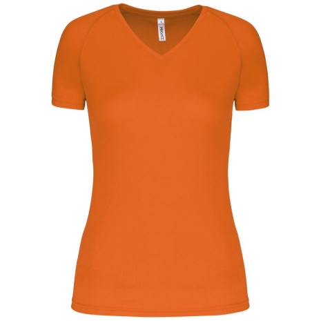 Dames sport-t-shirt V-hals. 100% polyester: heel sterk, licht en ademend.