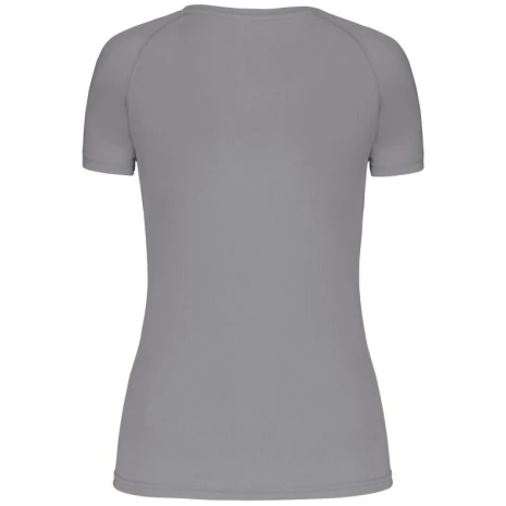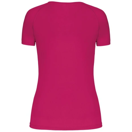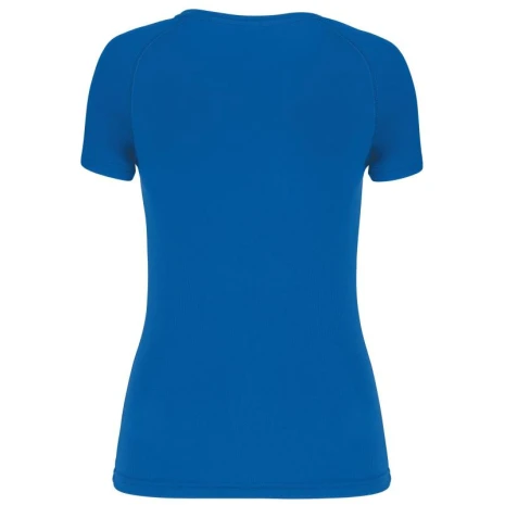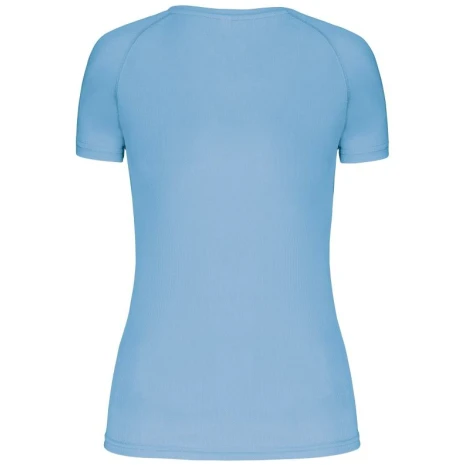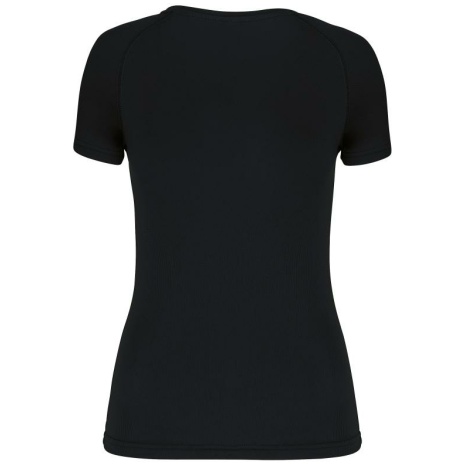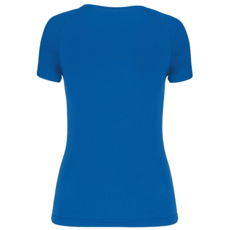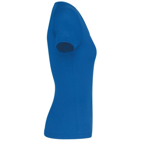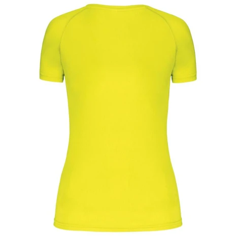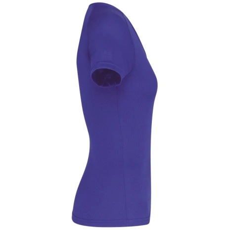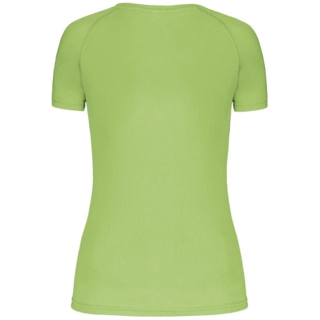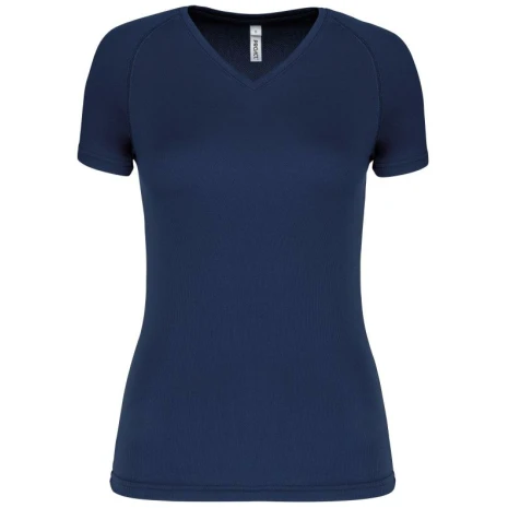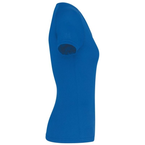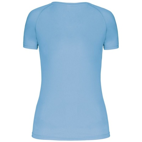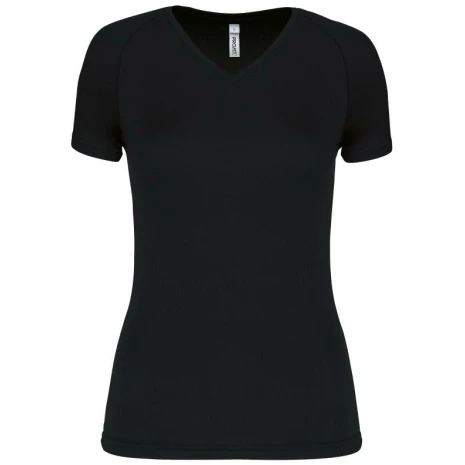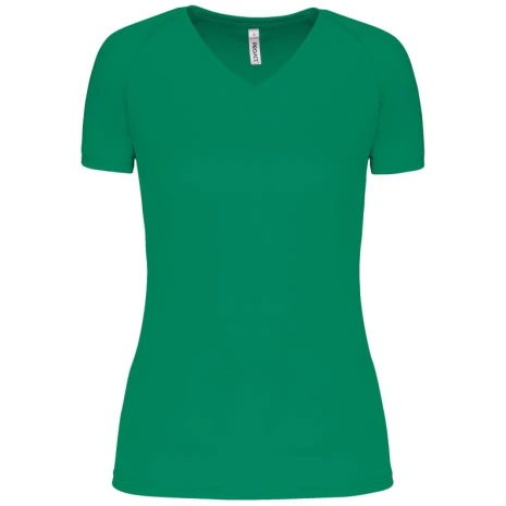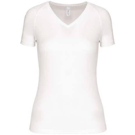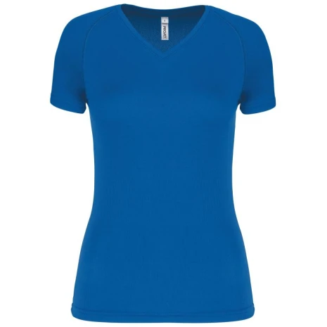 Dames sport-t-shirt V-hals. 100% polyester: heel sterk, licht en ademend.