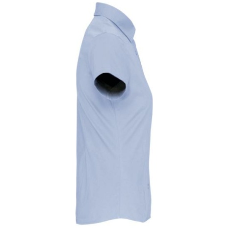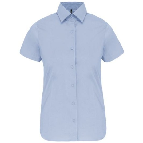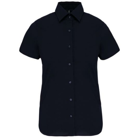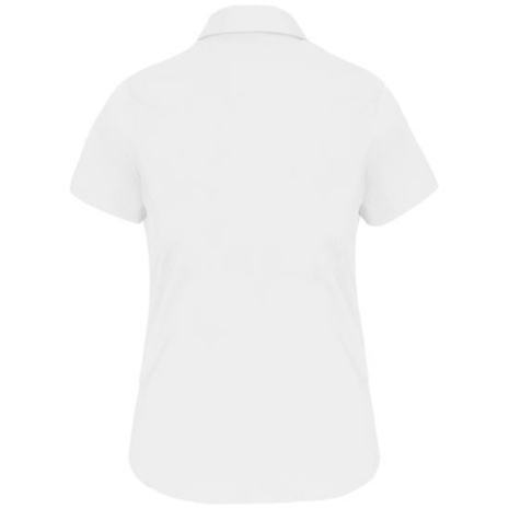 Dames stretch blouse korte mouwen Bewegingsvrijheid en optimaal comfort. Voor een elegant, minimalistisch silhouet. Plooi op de achterkant en de taille, zodat het kledingstuk mooi valt. 97% katoen / 3% elasthan. Getailleerd overhemd en comfortabele pasvorm. Kraag zonder knopen. Toon op toon knopen. Plooitjes aan de achter- en zijkant. Mouwuiteinden omgezoomd. 1 extra knoop. Afgeronde onderkant.