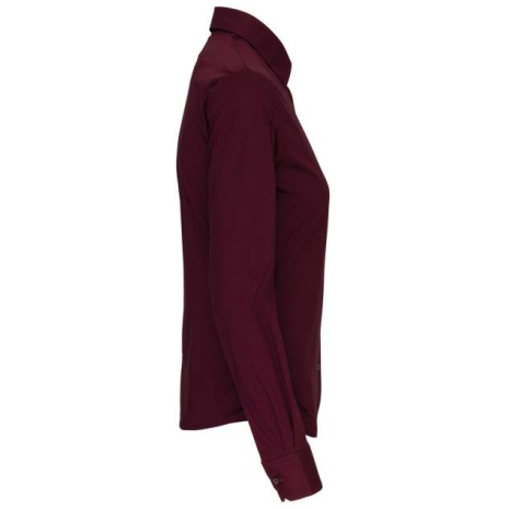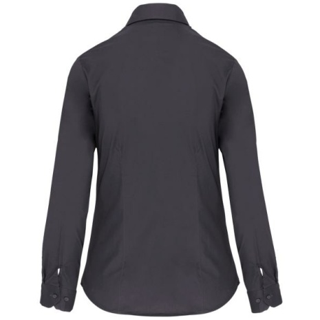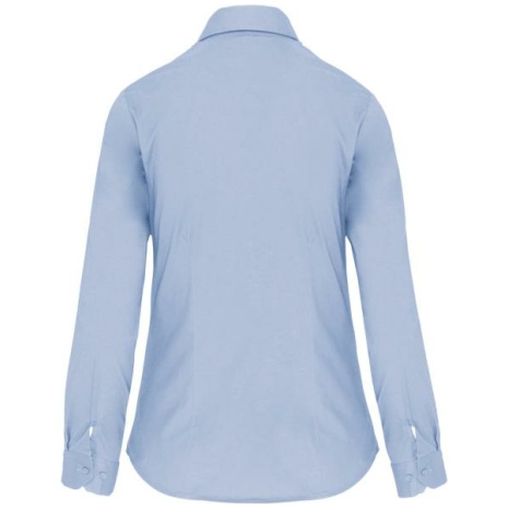 Dames stretch blouse lange mouwen Bewegingsvrijheid en optimaal comfort. Voor een elegant, minimalistisch silhouet. Plooi op de achterkant en de taille, zodat het kledingstuk mooi valt. 97% katoen / 3% elasthan. Getailleerd overhemd en comfortabele pasvorm. Kraag zonder knopen. Toon op toon knopen. Plooitjes aan de achter- en zijkant. Verstelbare omgeslagen mouwen. 1 extra knoop. Afgerond boord aan de onderkant.
