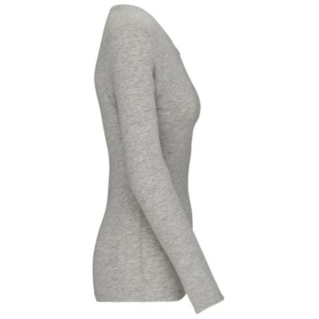 Dames-t-shirt ronde hals lange mouwen Modieuze, trendy snit. Valt soepel en licht. Collectie heel comfortabele T-shirts. 97% katoen / 3% elasthan. Chiné kleuren: 87% katoen / 9% viscose / 4% elasthan. Ronde hals. Dubbel stiksel aan mouwuiteinden en onderkant. De moderne getailleerde snit zijn volgens de laatste modetrends.
