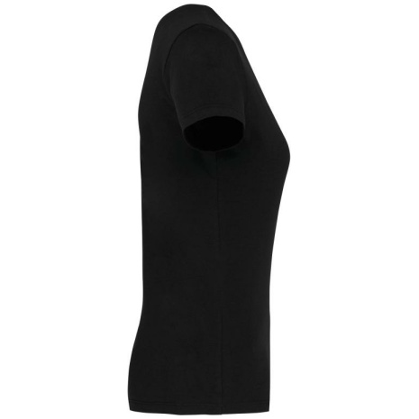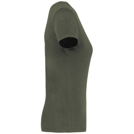 Dames T-shirt V-hals Korte Mouwen. Enzymgewassen en gekamd katoen: het oppervlak blijft ook na veel wasbeurten glad.