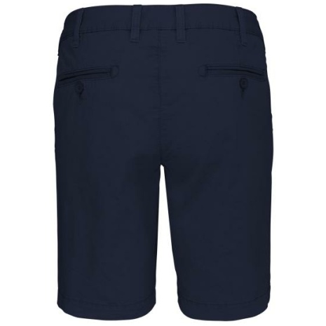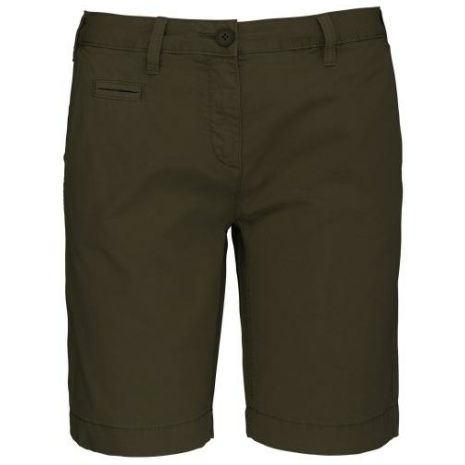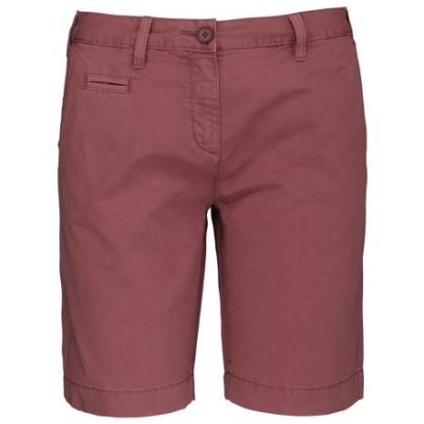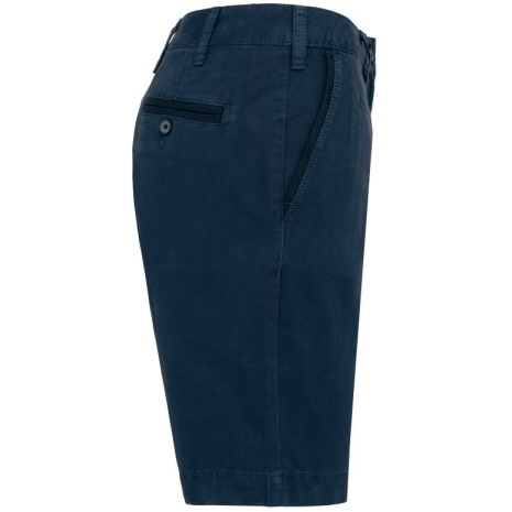 Damesbermuda met verwassen look Heel comfortabele en modieuze snit. Unieke afwerking met een verouderd effect. Gewassen twillstof met een grote wasweerstand. 100% katoen. Verwassen stof voor een optimaal comfort. 2 Italiaanse zijzakken waarvan één met 1 muntzak, 1 ticketzak. 2 omzoomde achterzakken met knoop en verstevigend stiksel. Ritssluiting met knoop. Riem met lussen.