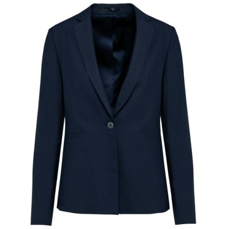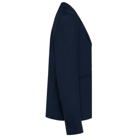 Damesblazer Een heel aangename, fitted pasvorm. Hoogwaardige materialen voor comfort en warmte. Mantelpak om af te werken met broek PK750 of rok PK5001. 50% polyester / 23% viscose / 22% wol / 5% elasthan. Voering in 100% ton-sur-ton polyestertwill met ruimteplooien. Jasje met 1 knoop. 2 omzoomde zakken aan de voorkant. Een omzoomde zak aan de binnenkant op het hart. Mouwuiteinde met 3 knopen. 1 ruimtesplit onderaan de rug. Geen merklabel, maar enkel een maatlabel voor eenvoudige personalisatie.