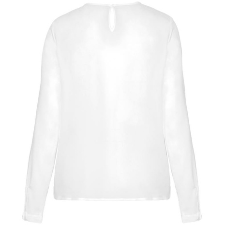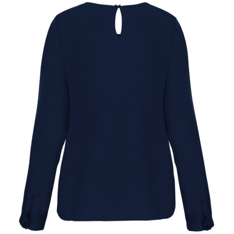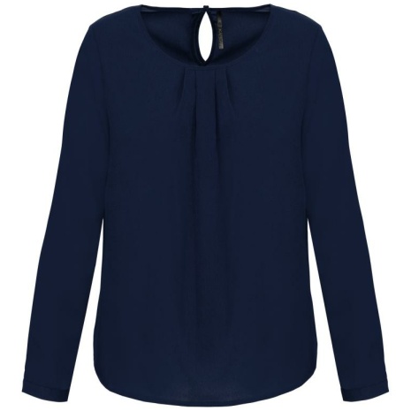 Damesblouse in crêpe met lange mouwen Ronde hals met fronsjes voor een eenvoudige, elegante look. Een onmisbaar, vrouwelijk stuk uit de professionele garderobe. Soepel vallend model en lichte stof, voor een chique en minimalistische stijl. 100% polyester. Soepele en lichte crêpe. Ronde hals met biesje. Fronsjes aan de halsopening aan de voorkant. Sluiting aan de achterkant en aan de onderkant van de mouwen door middel van een afgedekte knoop.