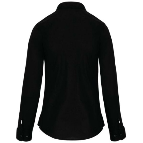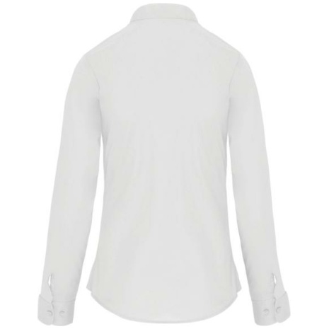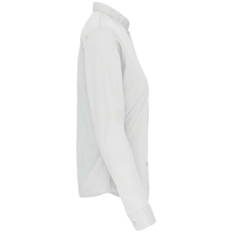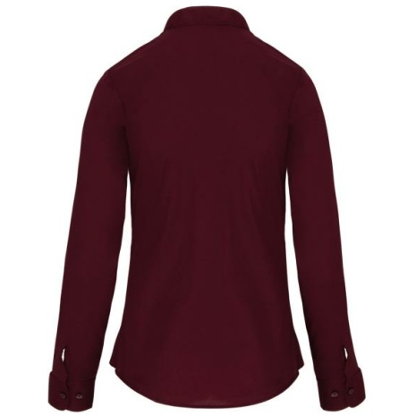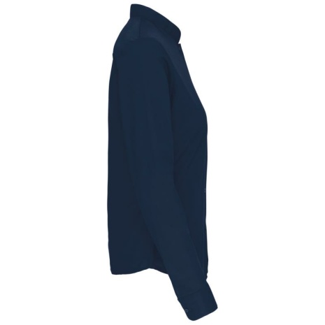 Damesblouse met “Mao” kraag lange mouwen Het overhemd voor professionals uit de horeca. Met een chique en moderne maokraag. Easy-care behandeling voor een gemakkelijk onderhoud. 65% polyester / 35% katoen popeline. Easy Care. Mao kraag zonder knopen. Knooplijst met toon op toon knopen. Borstzakje links in de vorm van een V. Verstelbare mouwuiteinden met afgeronde manchetten. 1 reserveknoop. Onderkant afgerond.