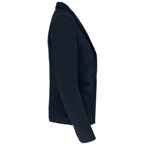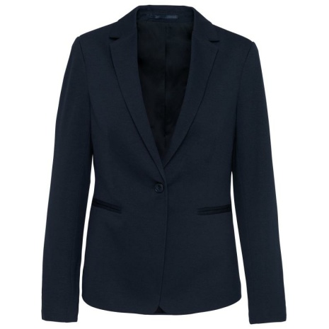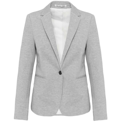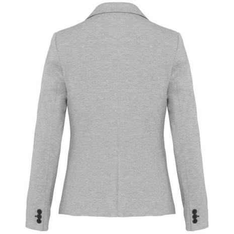 Damesjas van tricot Licht en comfortabel. De klasse van een blazer en het comfort van tricot, voor een casual businesslook. 80% polyester / 18% katoen / 2% elasthan (Night navy heather) – 74% polyester / 24% viscose / 2% elasthan (Light grey heather). Interlock. Voering lichaam van polykatoen en mouwen van taffetas polyester. Jas met 1 knoop. 2 omzoomde zakken aan de voorkant. 1 binnenzak met knoop. Contrasterende bies aan de binnenkant vooraan. Mouwuiteinde met 3 knopen, waarvan 1 met contrasterend knoopsgat. 1 ruimtesplit op de achterkant. 1 blinde drukkersrits binnenin aan de voorkant links.