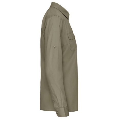 Damesoverhemd safari lange mouwen Trendy, casual safarihemd. Gemaakt uit katoenpopeline, een soepel en zijdeachtig materiaal. Twee zakken met klep op de borst, om de praktische stijl van het model te accentueren. 100% katoen. Popeline. Kraag zonder knopen. 2 opgezette zakken met klep aan de voorkant. Verstelbare mouwuiteinden met knoop. Opstroopbare mouwen met een knooplijst. Shirt gewassen. Dit product kreeg een speciale behandeling om het er verouderd te laten uitzien. Dit ambachtelijke procedé maakt dat er kleurverschillen zijn tussen de producten, waardoor elk stuk uniek is.