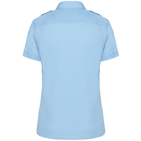 Damespilootoverhemd korte mouwen Elegante, professionele look. Easy-care behandeling voor een gemakkelijk onderhoud. Ideaal voor professioneel gebruik. 65% polyester / 35% popelinekatoen. Gemakkelijk in onderhoud (EasyCare-behandeling). Toon-op-toon knopen. 2 borstzakken met klep, waarvan aan de linkerkant een met plaats voor een pen. Knooplijst op de schouders om galons te bevestigen (epauletten niet meegeleverd). Afgewerkt met omslag aan de mouwuiteinden.