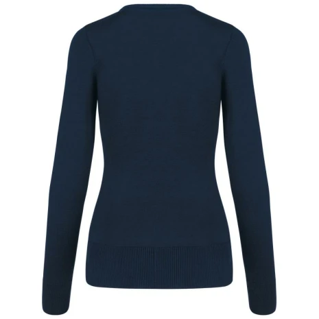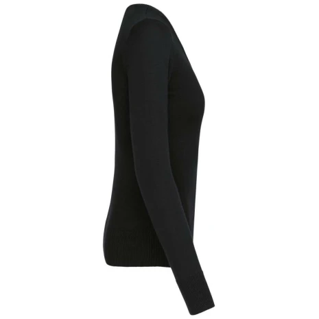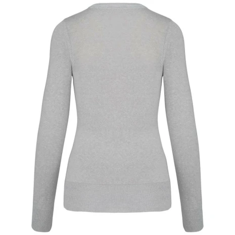 Damespullover ronde hals Voor een trendy en elegante stijl. Getailleerde snit, valt perfect. Lichte en comfortabele textuur. 50% katoen / 50% acryl. Getailleerde snit. 2-laagse kraag in rib. Nektape.