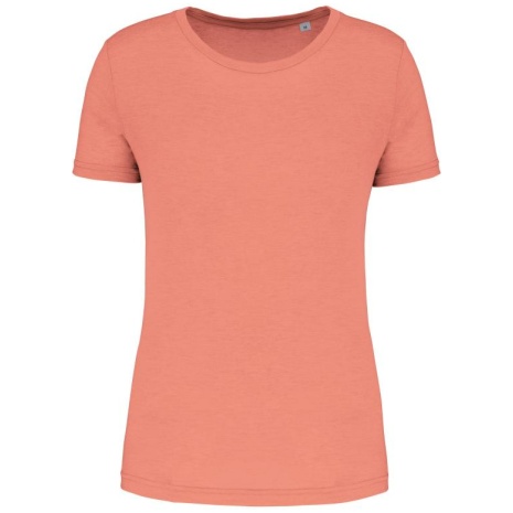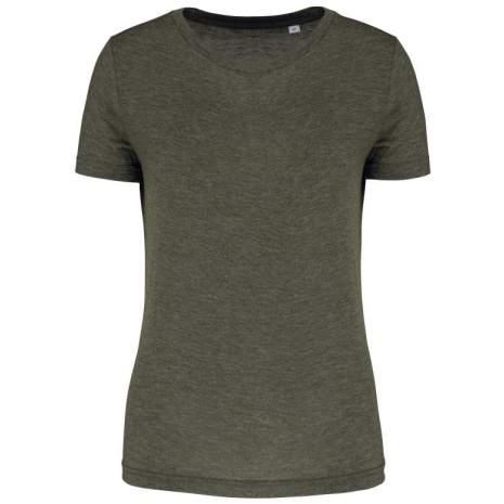 Damessport-T-shirt triblend met ronde hals. Comfortabel katoen, sterk polyester en luxueuze viscose.