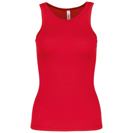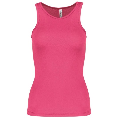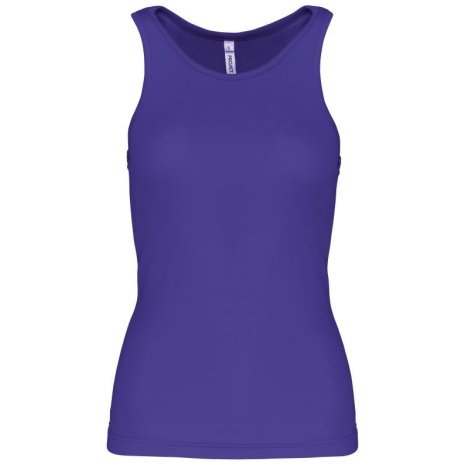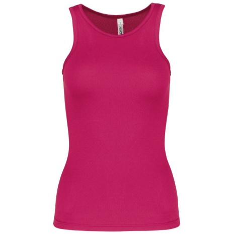 Damessporttop. 100% polyester: heel sterk, licht en ademend.