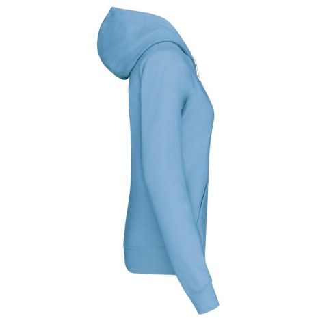 Damessweater met capuchon in contrasterende kleur Tweekleurige sweater met capuchon, voor een casual look. Geborsteld fleece aan de binnenkant, voor een optimaal comfort. Snoeropening voor headset in de kangoeroezak en halsopening. 80% gekamd katoen / 20% polyester (Oxford Grey: 76% gekamd katoen / 21% polyester / 3% viscose). Geborsteld fleece aan de binnenkant. Gaatje voor draadje in de kangoeroezak en lusje aan de kraag voor oortjes. Ribboord aan mouwuiteinden en onderkant kledingstuk. Gevoerde capuchon in contrasterende kleur met aanrijgkoordjes.
