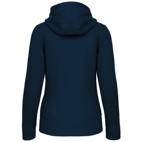 Damessweater met rits en capuchon De onmisbare sweater met capuchon en rits, voor een hippe, casual stijl. Geborsteld fleece aan de binnenkant, voor een optimaal comfort. Tijdloos en casual 80% katoen / 20% polyester (Ash Heather: 79% katoen / 20% polyester / 1% viscose). Buitenoppervlak 100% katoen. Geborsteld fleece aan de binnenkant. Nektape in contrasterende kleur aan de halsopening (Navy voor kleur Oxford Grey en Ash Heather ; Oxford Grey voor alle andere kleuren). Gevoerde capuchon in honinggraatstructuur. Kangoeroezakken. Ribboord aan mouwuiteinden en onderkant kledingstuk. Ritssluiting.