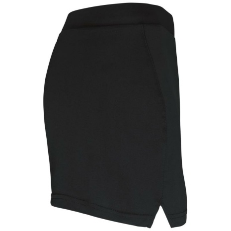 Damestennisrokje. 100% interlockpolyester: dikker, rolt niet op.