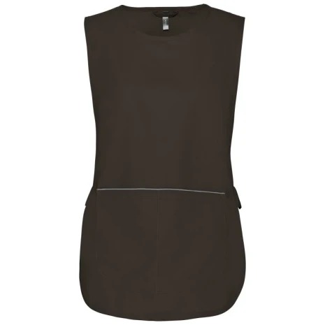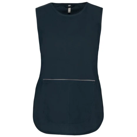Damestuniek Wassen op 60 °C, ideaal voor professioneel gebruik. Een sterke, soepele en duurzame stof. Comfortabele en lichte snit. 65% polyester / 35% katoen. Wasbaar op 60 °C. Sterke stof en comfortabele snit. Grote zak aan de voorkant, bestaande uit 2 vakken met 1 binnenzakje. Regelbaar aan de zijkant met 2 drukknopen. Contrasterend biesje bovenaan de zak. 1 naametiket aan de binnenkant. Afgeronde boord. Lengte maat L/XL: 78 cm.