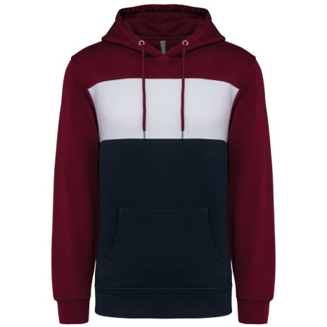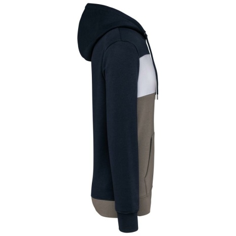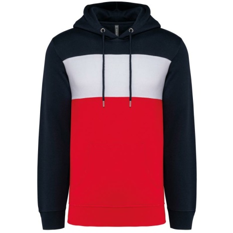 Driekleurige unisex sweater met capuchon. Gemaakt uit geborsteld fleece 3 draden LSF-behandeling aan de binnenkant, met een uitstekend bedrukkingsvlak. Heel stevig en wasbestendig.