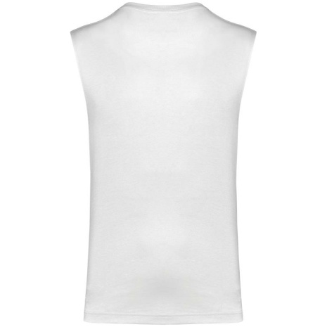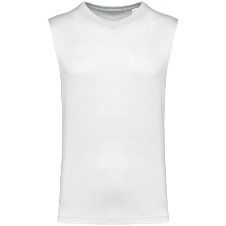 Duurzaam mouwloos heren-T-shirt. No label: 100% personaliseerbaar naar uw merk.