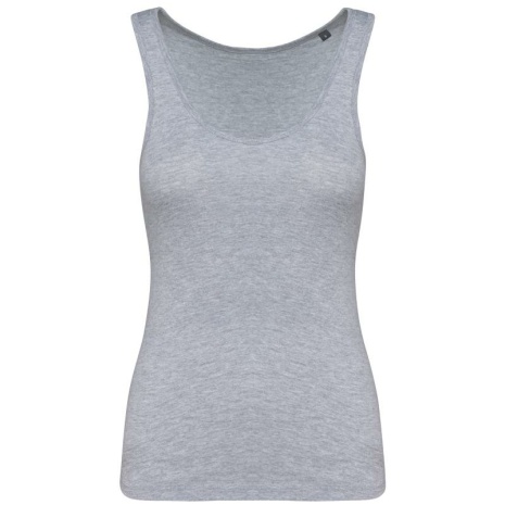 Duurzame dames tank top Een altijd trendy kledingstuk voor meer duurzame mode. Schouderversteviging in silicone voor een betere pasvorm. No label: 100% personaliseerbaar naar uw merk. 100% katoen (behalve de kleur Oxford Grey: 90% katoen en 10% viscose). Alle kleuren zijn gemaakt van biologisch katoen in conversie. Jersey. Gekamd katoen. Fitted pasvorm. Ronde hals. De mouw- en halsopening zijn toon-op-toon afgewerkt met de hoofdstof. De boord onderaan kreeg een dubbel stiksel. Geen merklabel, maar een maatlabel in de kraag voor eenvoudige personalisatie.
