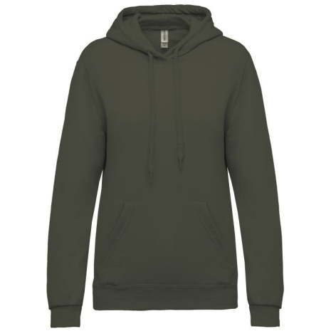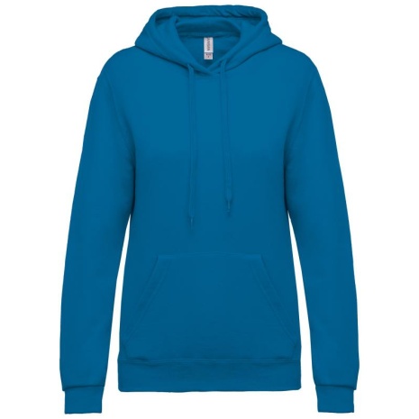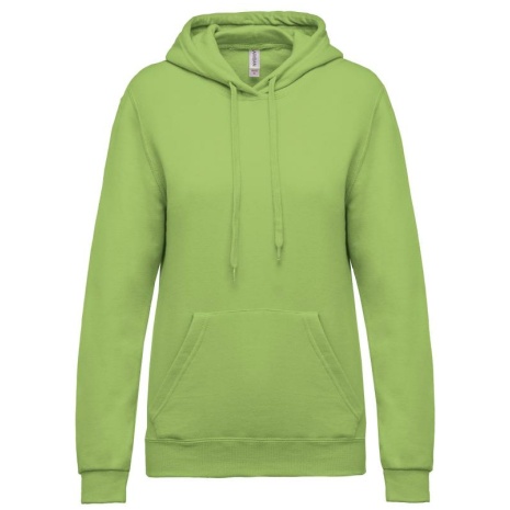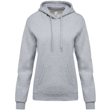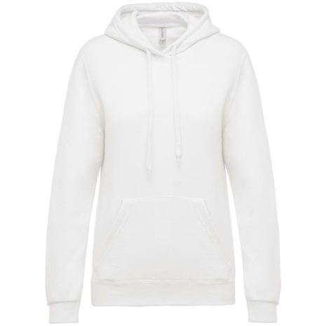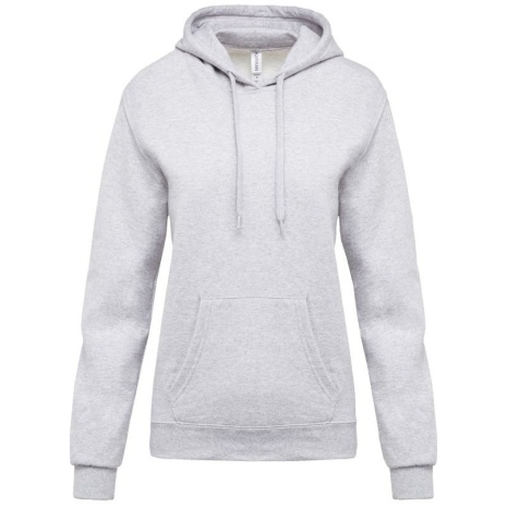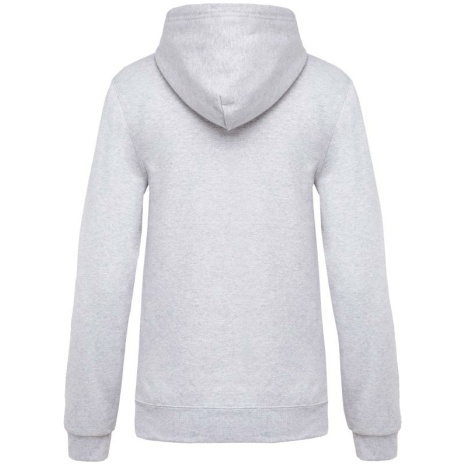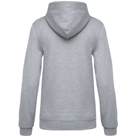 Eco damessweater met capuchon Casual-sportieve look. Geborsteld fleece aan de binnenkant, voor een optimaal comfort. Handig met de kangoeroezak. 80% katoen / 20% polyester. Geborsteld fleece aan de binnenkant. Ingezette mouwen. Gevoerde capuchon met toon op toon aanrijgkoordjes. Kangoeroezakken. Ribboord aan mouwuiteinden en aan de onderkant.
