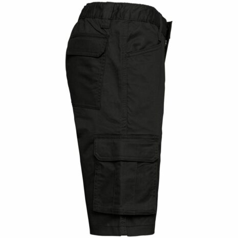 Eco-friendly heren bermuda met meerdere zakken Workwear-stuk dat in een ecologische aanpak past. Veel multifunctionele zakken. Duurzaam, stevig en bestand tegen veelvuldig wassen op 60 °C. 65% biologisch katoen, 33% gerecycleerd polyester / 2% elasthan. Twillstof. Rechte snit. Wasbaar op 60 °C. Twee open zakken aan de voorkant, waarvan 1 muntzak en 2 zakken met ruimteplooi en klittenbandsluiting opzij. 2 achterzakken met klep en klittenbandsluiting. Ophanglus voor gereedschap links (bij het dragen). Elastische tailleband met lussen en ophanglus aan de binnenkant. Ritssluiting met knoop. Metalen knoop met een stoffen bescherming. Verstevigde naden met drievoudig stiksel tussen de benen. Afneembaar merklabel.