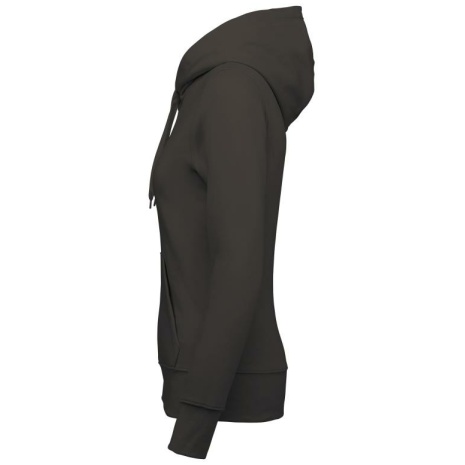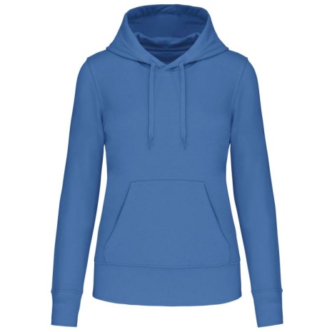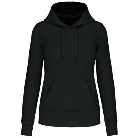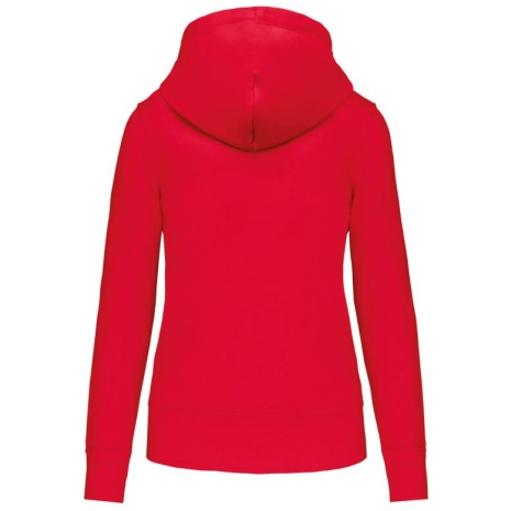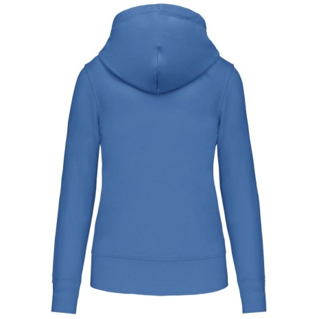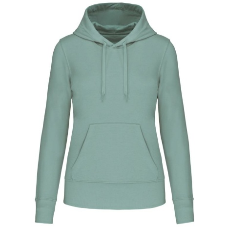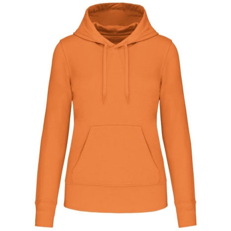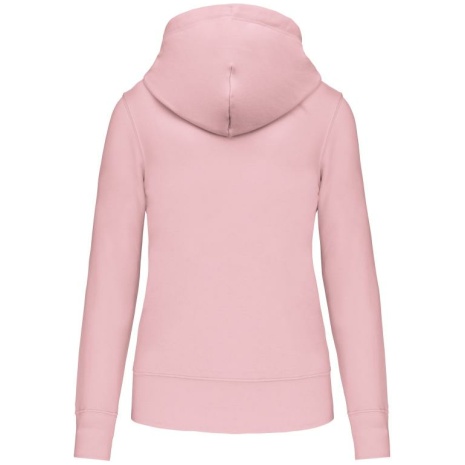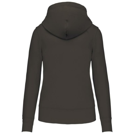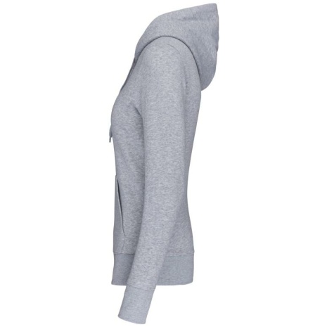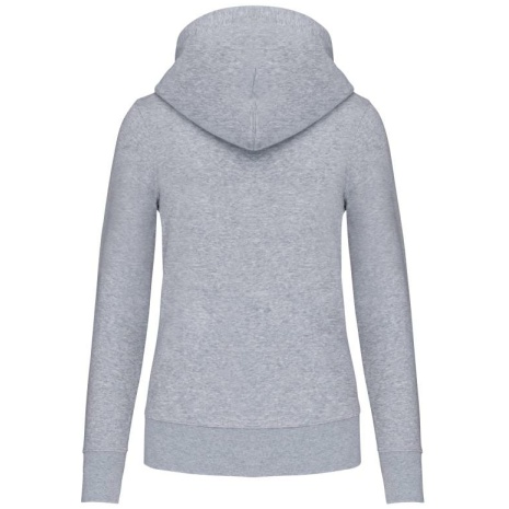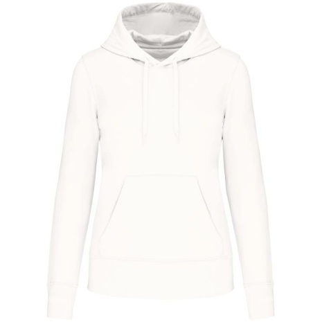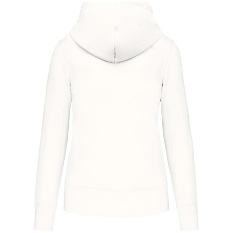 Ecologische damessweater met capuchon Modieus en milieuvriendelijk. Gemaakt van 3 LSF-draden: sterk en wasbestendig No label: 100% personaliseerbaar naar uw merk. 85% katoen / 15% polyester. Gemaakt van 85% biologisch katoen en 15% gerecycled polyester post-consumer. Buitenoppervlak 100% katoen. Geborsteld fleece 3 draden LSF (Low Shrinkage Fleece) aan de binnenkant. Enzymgewassen. Gekamd katoen. Rechte snit. 1×1 ribboord in buisconstructie voor een betere afwerking aan de mouwuiteinden en de onderkant. Kangoeroezak. Gevoerde capuchon 100% katoen, jerseykatoen 180 g. Nektape in toon-op-toon jersey en halvemaanvormige afwerking aan de binnenkant van de kraag. Afwerking met dubbel stiksel aan de mouwuiteinden, de onderkant en de hals. Geen merklabel in de kraag, maar enkel een maatlabel voor eenvoudige personalisatie.