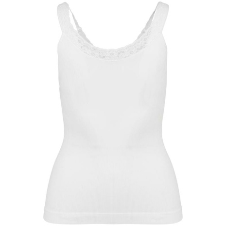 Ecologische en naadloze top met kant Gemaakt zonder naad. Ideaal om in te trainen. Duurzame top: bevat gerecycleerd polyamide. Afneembaar etiket voor eenvoudige personalisatie. 98% polyamide, 2% elastaan. Gemaakt van 58% gerecycleerd polyamide pré-consumer. Q-NOVA®-draad. 2×2 ribstof. Nauwsluitende pasvorm. Zonder naden. Schouderbandjes en halsopening met kant aan de voor- en achterkant. Biesje aan de mouwopening. Zoom met onzichtbaar stiksel aan de onderkant. Tear-away merklabel.