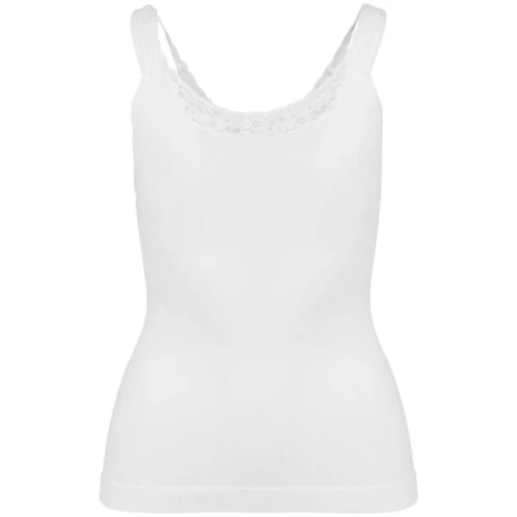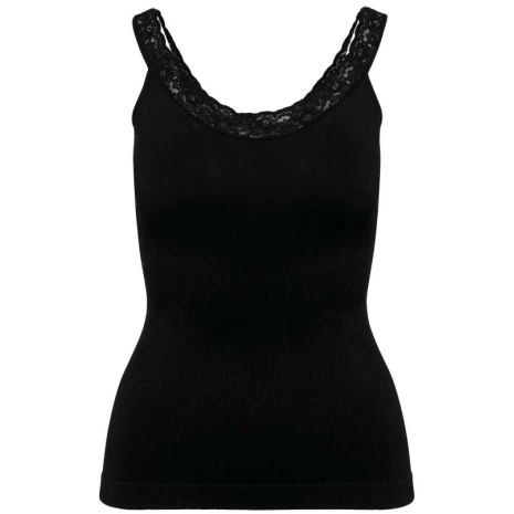 Ecologische en naadloze top met kant Gemaakt zonder naad. Ideaal om in te trainen. Duurzame top: bevat gerecycleerd polyamide. Afneembaar etiket voor eenvoudige personalisatie. 98% polyamide, 2% elastaan. Gemaakt van 58% gerecycleerd polyamide pré-consumer. Q-NOVA®-draad. 2×2 ribstof. Nauwsluitende pasvorm. Zonder naden. Schouderbandjes en halsopening met kant aan de voor- en achterkant. Biesje aan de mouwopening. Zoom met onzichtbaar stiksel aan de onderkant. Tear-away merklabel.