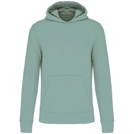 Ecologische kindersweater met capuchon Trendy en ecologisch. Gemaakt van 3 LSF-draden (Low Shrinkage Fleece) : sterk en wasbestendig No label : 100% personaliseerbaar naar uw merk. 85% katoen / 15% polyester. Gemaakt van 85% biologisch katoen en 15% gerecycled polyester post-consumer. Buitenoppervlak 100% katoen. Geborsteld fleece 3 draden LSF (Low Shrinkage Fleece) aan de binnenkant. Gekamd katoen. Enzymgewassen. Rechte snit. 1×1 ribboord in buisconstructie voor een betere afwerking aan de mouwuiteinden en de onderkant. Kangoeroezak. Gevoerde capuchon 100% katoen, jerseykatoen 180 g. Nektape in toon-op-toon jersey en halvemaanvormige afwerking aan de binnenkant van de kraag. Afwerking met dubbel stiksel aan mouwuiteinden en onderkant. Geen merklabel in de kraag, maar enkel een maatlabel voor eenvoudige personalisatie.