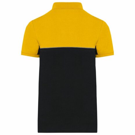 Ecologische uniseks polo met korte mouwen in twee kleuren Antipluisbehandeling om de stof beter te beschermen en te verzekeren dat ze langer mooi blijft. Ecologische polo. Kan worden gewassen op 60 °C. 60% katoen / 40% polyester. Gemaakt van 60% gekamd katoen en 40% gerecycleerd polyester. Vortex-garen. Piquétricot. Anti-pluisbehandeling. Wasbaar op 60 °C. Fitted pasvorm. Toon-op-toon lijst met 2 knopen. Kraag in 1×1 ribboord met contrasterende nektape met visgraatmotief.Contrasterende bies tussen de tweekleurige delen van het kledingstuk (lichaam, voorkant mouwen en rug). Afgewerkt met ribboord aan de mouwuiteinden. Zijsplitten met contrasterend visgraatmotief. Afwerking met dubbel stiksel onderaan. Tear-away merklabel.