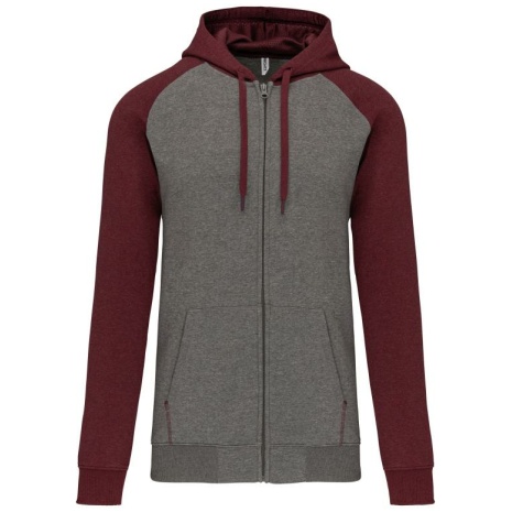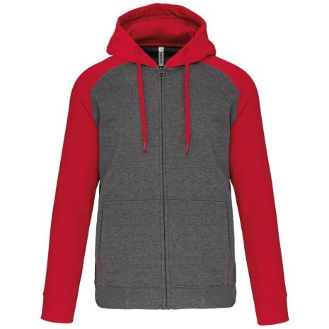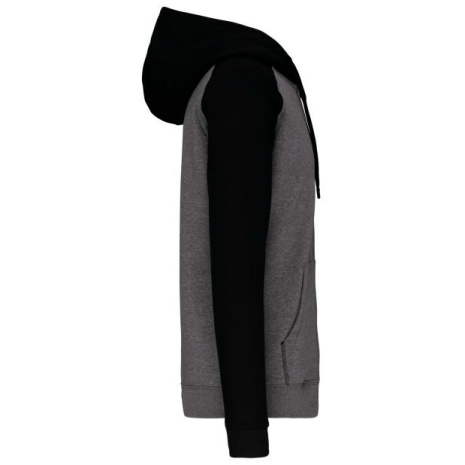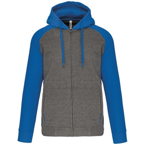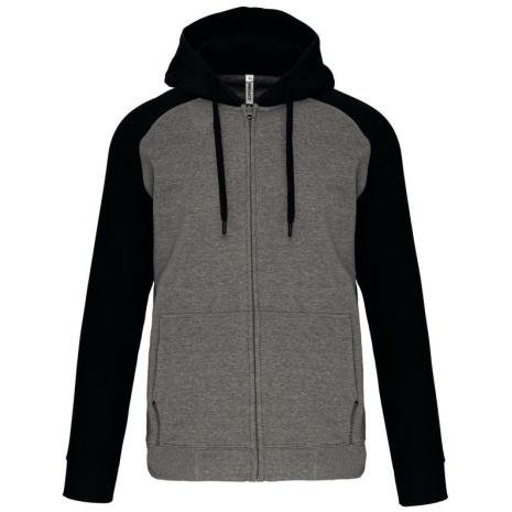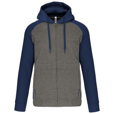 Fleece met rits en tweekleurige capuchon unisex Geborsteld fleece aan de binnenkant voor meer zachtheid en comfort. Kangoeroezakken met fluorescerend gsm-zakje. Opening voor headsetsnoer. 65% polyester / 35% katoen. Geborsteld fleece aan de binnenkant. Ritssluiting. Contrasterende raglanmouwen en capuchon. Capuchon gevoerd met toon op toon mesh. Kangoeroezakken met fluorescerend gsm-zakje. Opening voor headset-snoer. Mouwboorden en onderzijde in 2×2 ribboord met dubbele dikte.