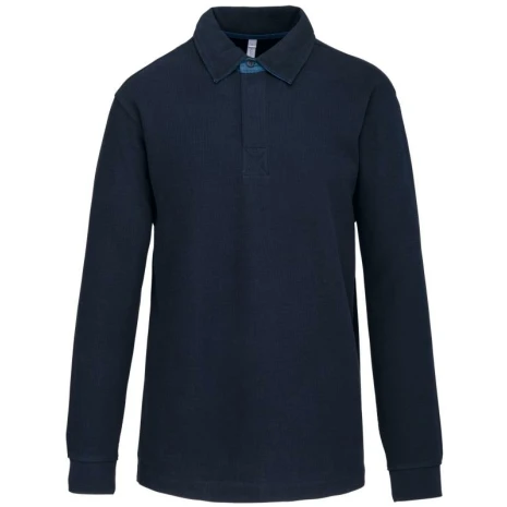 French Rib polo Comfortabele geribde polo. Casual pasvorm en klassieke polokraag. Contrasterende binnenkant van kraag en knooplijst. 100 % katoen met 1×1 rib (Heather : 85% katoen / 15% viscose). Zijsplitjes en binnenkant kraag in gevlochten visgraatmotief. Knooplijst met 3 knopen. Afwerking met dubbele stiksels.