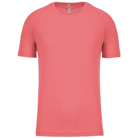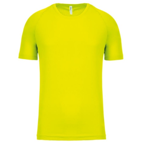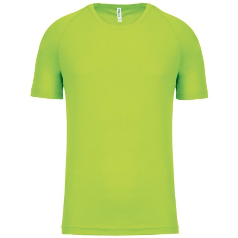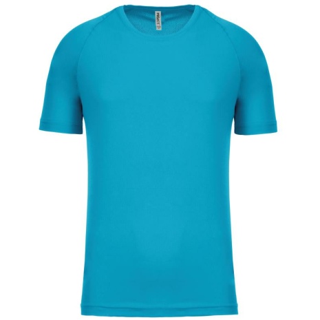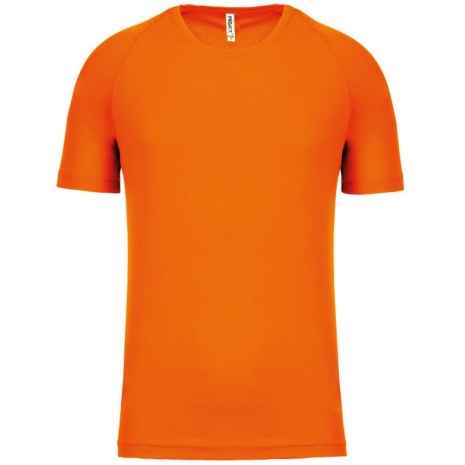 Functioneel sportshirt 100% polyester: heel sterk, licht en ademend. Lichte en sneldrogende stof. Ronde halsopening met nektape aan de binnenkant. 100% polyester. Sneldrogende lichte stof. Ronde hals. Nektape. Raglan mouwen met overstiksels. Afwerking met dubbele stiksels aan de mouwuiteinden en onderkant.