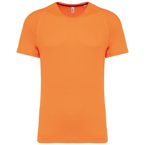 Gerecycled herensport-T-shirt met ronde hals Lichte en sneldrogende stof voor meer comfort tijdens de inspanning. Rechte snit en raglanmouwen voor meer bewegingsvrijheid. Milieuvriendelijk materiaal. 100% polyester. Gemaakt van 100% gerecycled polyester. Lichte en sneldrogende stof. Rechte snit. Ronde halsopening met contrasterende nektape aan de binnenkant. Raglanmouwen met toon op toon stiksels. Dubbel stiksel aan halsopening, mouwuiteinden en onderkant kledingstuk. Buisvormig aan de onderste zoom en aan het mouwuiteinden. Afscheurbaar merklabel voor eenvoudige personalisatie.