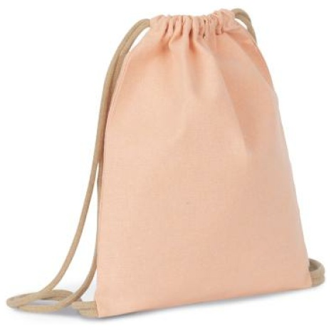 Gerecycled rugzakje met koordje – Kindermaat Tas gemaakt van gerecycled materiaal. Klein formaat, ideaal voor kinderen. Handige en sterke sluiting. Katoen / Polyester. Tasje met koordje, bestaande uit 75% gerecycled katoen / 22% gerecycled polyester / 3% andere vezels (Deep Water), 75% gerecycled katoen / 20% gerecycled polyester / 5% andere vezels (Flint Grey), 70% gerecycled katoen / 30% gerecycled polyester (Topaz Blue, Ecume, Salmon). Sluiting met dik aanrijgkoord. Kindermaat. Bestaat in volwassen versie KI5102.