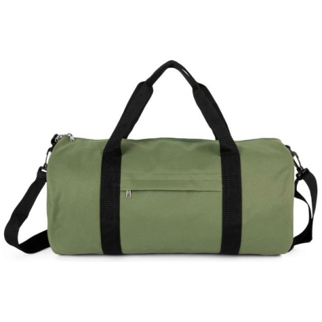 Gerecycleerde buisvormige tas met zak op de voorkant Handig sporttasmodel. Verstelbare schouderband voor meer comfort. Duurzame tas gemaakt van gerecycleerde vezels. 100% polyester 600D. Duffeltas in 50% gerecycleerd polyester. Zak met ritssluiting aan de voorkant. Verstelbare schouderriem.