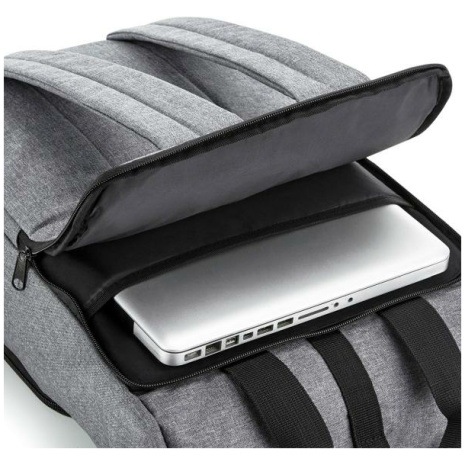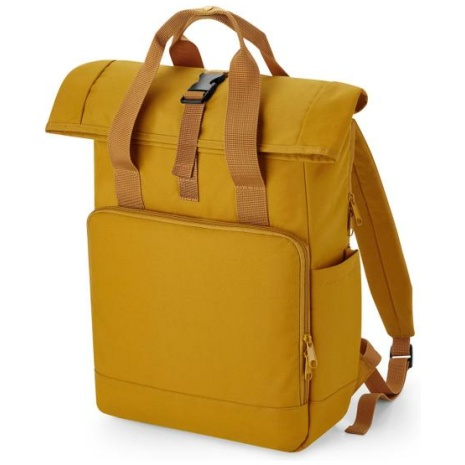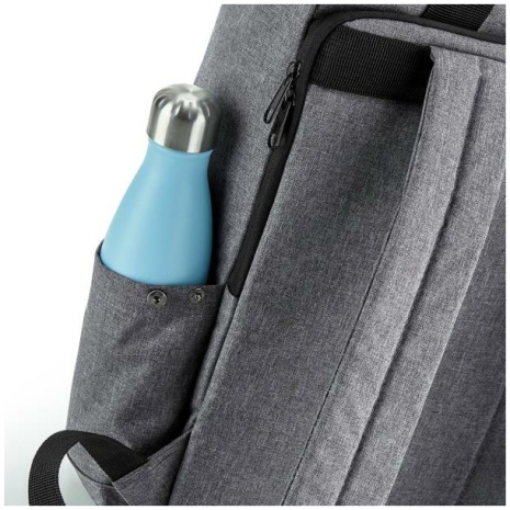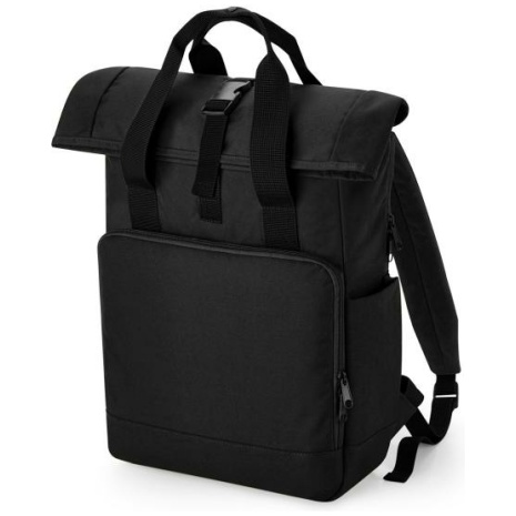 Gerecycleerde rugzak voor laptop Groot en handig formaat voor elk laptopmodel. Veel zakken. 100% polyester. 300D gerecycleerd polyester van 100% polyethyleentereftalaat, het equivalent van ongeveer 12 post-consumer petflessen. Geschikt voor laptops van max. 15,6″. Gewatteerd en beveiligd laptopvak met toegang van buitenaf. Voorste zak met organizer. Voorste zak ontworpen voor een gemakkelijke decoratie. Drinkbuszak binnenin. Ritszak binnenin. Gewatteerde achterkant. Rolsluiting. Verstelbare gewatteerde schouderbanden. Handgrepen van canvas. Afneembaar TearAway-etiket, makkelijk opnieuw te labelen.