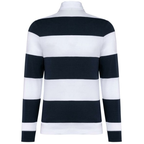 Gestreepte uniseks polo lange mouwen Enzymgewassen stof, perfect bedrukbaar. Gekamd katoen: het kledingstuk gaat lang mee. Trendy, comfortabele fitted pasvorm. 100% katoen. Gekamd katoen. Compact garen. Jersey. Enzymgewassen. Kraag in contrasterend twillkatoen voor alle kleuren. Fitted pasvorm. Knooplijst met onzichtbare knoopsgaten. 3 toon-op-toon rubberen knopen. Schouderversteviging in silicone voor een betere pasvorm. Afwerking mouwuiteinde in buisvormige gevoerde 1×1 ribboord voor een betere afwerking met dubbel stiksel. Onderkant afgewerkt met dubbel stiksel en twee zijsplitten met nektape in de hoofdstof in een contrasterende kleur. In de mouwuiteinden zit elasthan om vervorming van de manchet te voorkomen. Afscheurbaar merklabel en maatlabel in de kraag voor eenvoudige personalisatie.