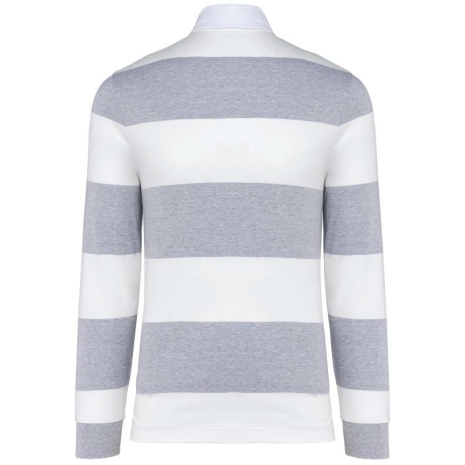 Gestreepte uniseks polo lange mouwen. Enzymgewassen stof, perfect bedrukbaar.