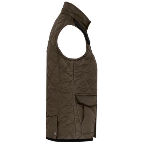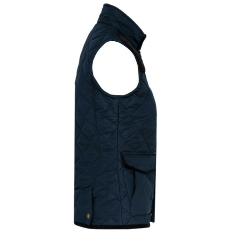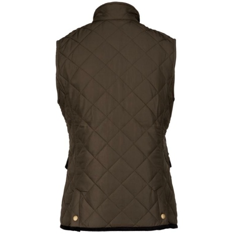 Gewatteerde damesbodywarmer. Kraag afgewerkt met ribfluweel, voor meer comfort.